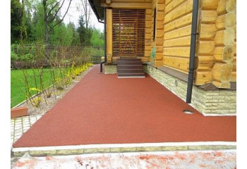Для отмостки вокруг дома используют покрытие из резиновой крошки, длинные рулоны или резиновую плитку.